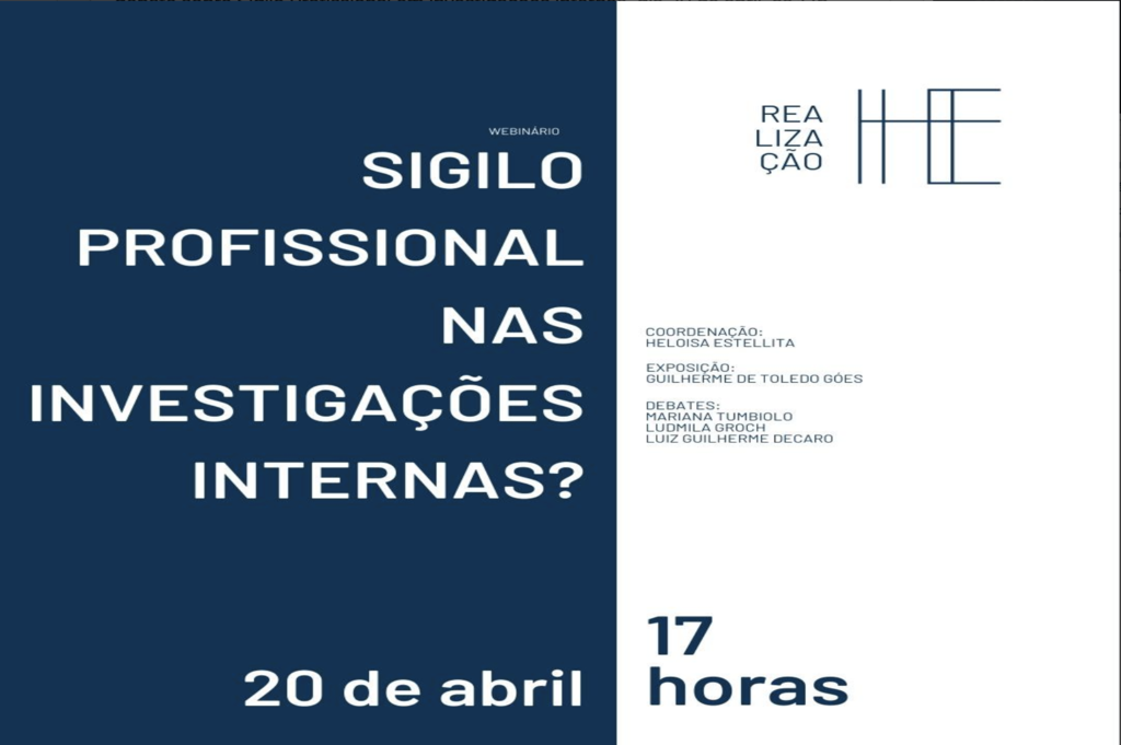 Coordenado por Heloisa Estellita, com exposição de Guilherme de Toledo Góes (Doutorando Universidade Humboldt de Berlin) e debates com nosso sócio Luiz Guilherme Decaro, bem como Ludmila Leite Groch e Mariana Tumbiolo Tosi , todas/os convidadas/os para um debate sobre Sigilo Profissional em Investigações Internas, dia 20 de abril, às 17h. Basta se inscrever no link abaixo: https://lnkd.in/dmyF8NV
